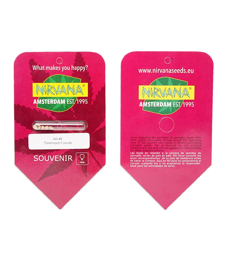 Семена конопли AK 48 fem от Nirvana. Пожалуй, самая сильная и скороспелая версия АК. Всего за 49-63 дня приносит 400-500 г/м² в индоре. Уровень ТГК 14-16%.