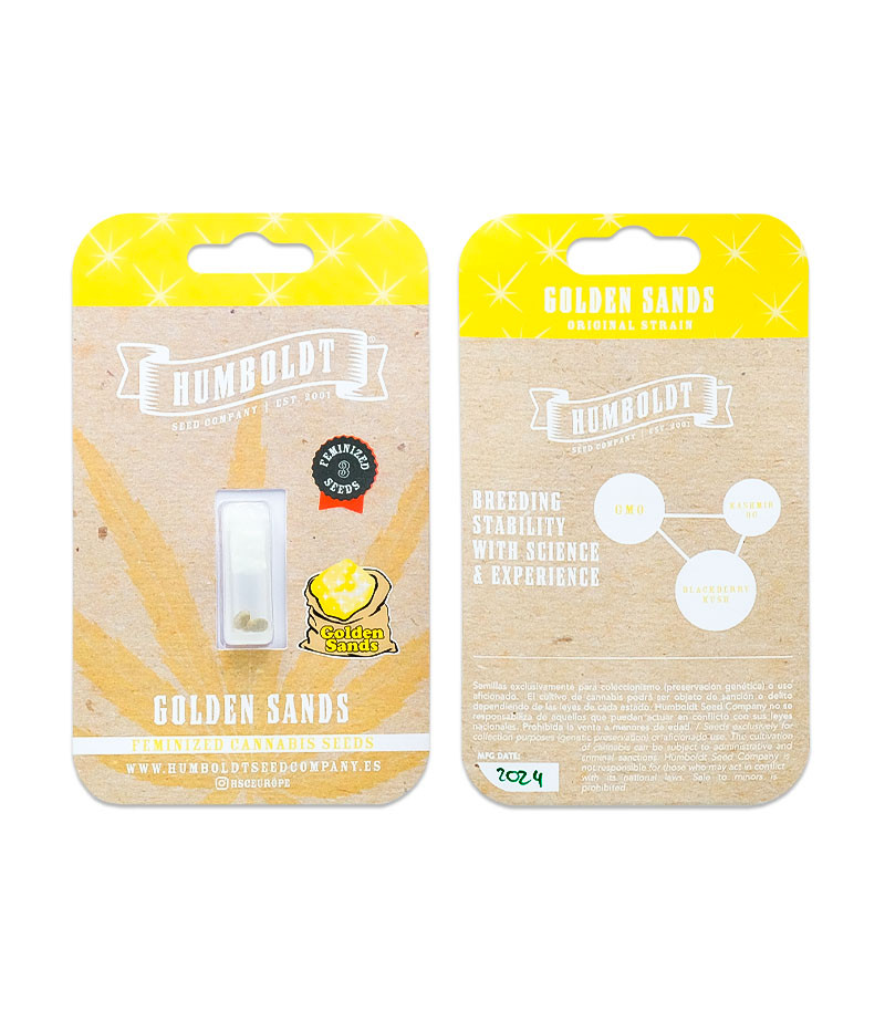 Сорт конопли Golden Sands разработан компанией Humboldt Seed Company специально для производителей концентратов. Объем смолы на его созревших бутонах можно сравнить с количеством песка в пустыне, а 30-35 % ТГК, что содержатся в готовом продукте, станут лучшим проводником в мир диких удовольствий.