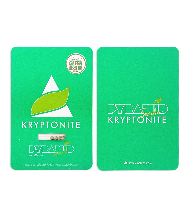 Сорт Kryptonite – одна из самых быстрых сатив, способная в рекордные сроки превратиться в шикарную зеленую елку, сплошь в шишках, смоле и трихомах. В индоре зацветает за 60-65 дней. Обладает кислым хейзовым запахом. Содержит 20 - 23% ТГК, а также 1% CBD и 0.6% CBN, т.е. на лицо медицинский потенциал