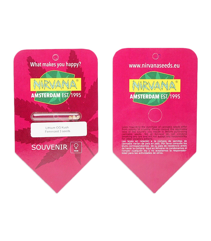 Семена конопли Lithium OG Kush fem. Невысокий, индика доминантный и вполне неприхотливый сорт. Обладает неплохой урожайностью, 450-550 г/м² в помещении.
