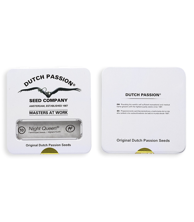 Night Queen («Королева ночи») – сорт каннабиса с преобладающими характеристиками афганской Индики. Это новая версия классического сорта 80-х годов прошлого века. Данный сорт отсутствовал на рынке семян каннабиса более 10 лет, прежде чем штамм вернулся на прилавки кофешопов. Селекционерами Dutch Passion был получен легкорастущий штамм, устойчивый к плесени и вредителям. Данный сорт на 95% состоит из индики и на 5% из сативы, и ни в чем не уступает Mazar. Содержание ТГК, измеренное в независимой лаборатории, составляет 18-20%.