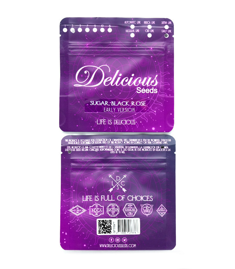 Sugar Black Rose Early Version – вариация оригинального сорта Sugar Black Rose с ускоренным периодом цветения. Она была получена селекционерами сид-банка Delicious Seeds путем скрещивания высокоурожайного растения Critical Mass со специально отобранным фенотипом сорта Black Domina. Кропотливый труд и желание угодить нетерпеливым гроверам принесли миру индика-доминантный сорт марихуаны, который с момента своего появления в 2010 году, был отмечен более чем 25-ю наградами на конопляных конкурсах и фестивалях. Сорт прекрасно показал себя как в открытом грунте, так и в закрытом, став визитной карточкой испанского сидбанка.