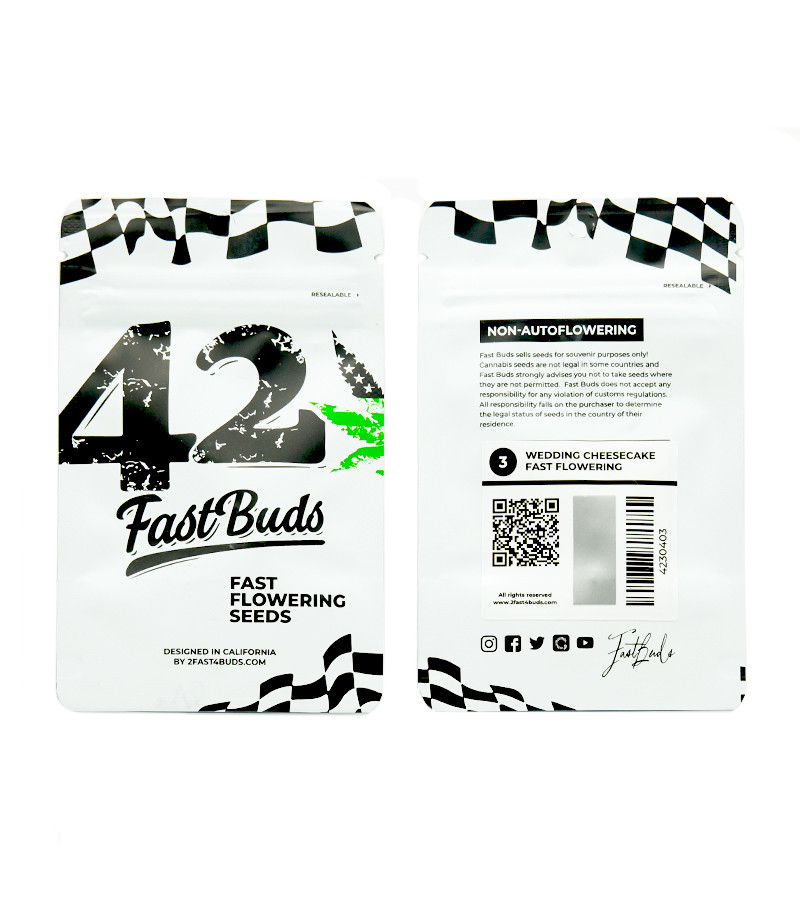 Сорт конопли Wedding Cheesecake FF – это одно из первых фотопериодных растений в новой коллекции сидбанка FastBuds. FF означает Fast Flowering. Все сорта в ней имеют сокращенный период цветения, что позволяет выращивать их в аутдоре в районах с коротким летним периодом. Также сативный гибрид подойдет для быстрого выращивания в стелс-боксе и получения максимальной выгоды при минимальном уходе. Готовый продукт сорта отличается высоким уровнем содержания ТГК в 25 %, неповторимыми вкусоароматическими качествами и ярким воодушевляющим high-эффектом. Растение не требует к себе пристального внимания и демонстрирует отличные показатели урожайности даже в руках начинающих садоводов. Генетически оно на 65 % состоит из генов сативы и на 35 % из индики.