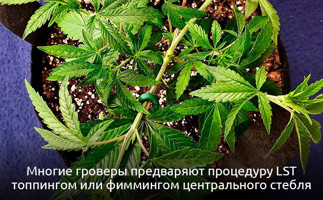 Иногда гроверы перед подгибом выполняют топпинг или FIM-обрезку. Так количество боковых ветвей у куста увеличивается. Можно совмещать LST и с другими способами выращивания, например с суперкроппингом, но это будет более агрессивный метод.